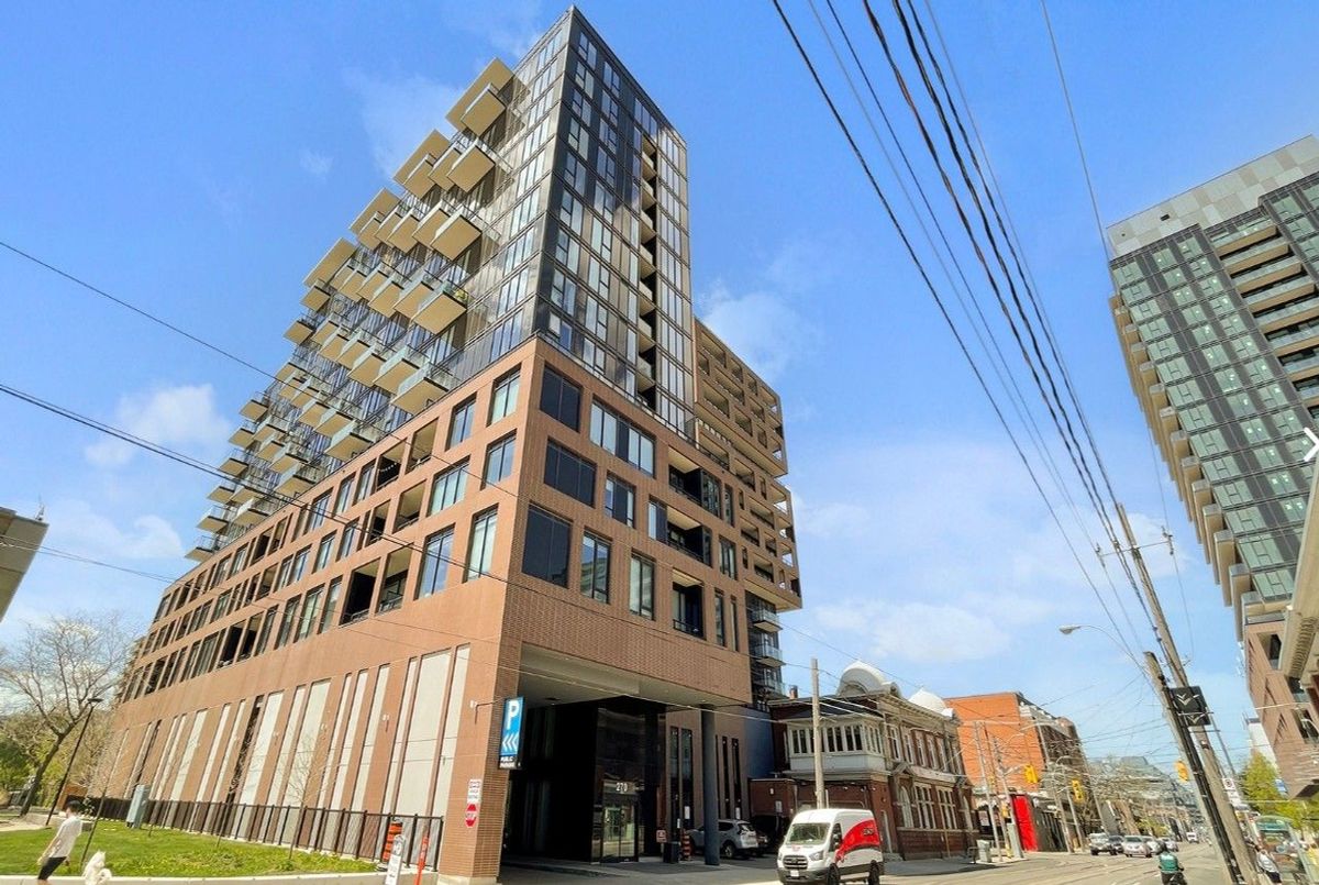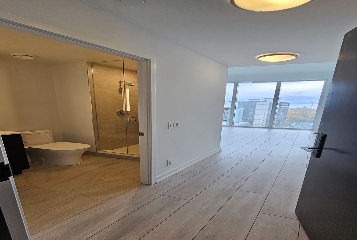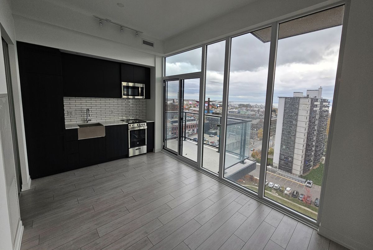 Welcome to XO Condos by Lifetime Developments a standout building in South Parkdale, completed just under 2 years ago. This 1+Den, 2-Bath suite offers a bright, functional layout with lake views, high ceilings, and a private balcony. The kitchen features built-in appliances and quartz countertops, and the den with sliding glass doors works well as a second bedroom or home office. Enjoy top-tier amenities: 24-hr concierge, gym, media room, outdoor terraces, and more. Steps to TTC, Liberty Village, CNE, the lake, shops, restaurants, and cafés. Quick streetcar ride to the Financial District and subway. Photos taken prior to current tenancy.