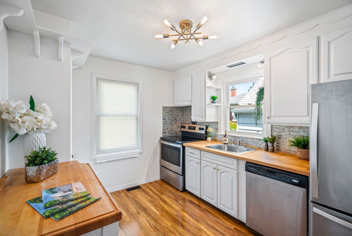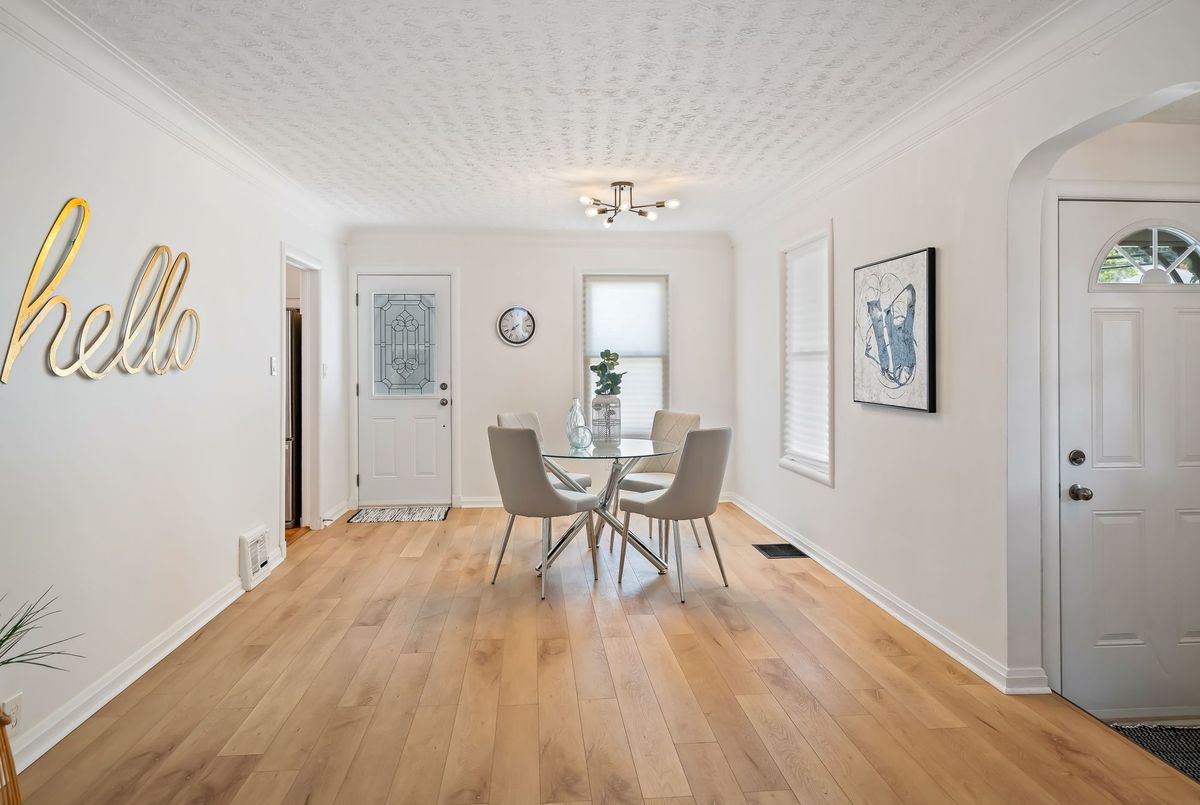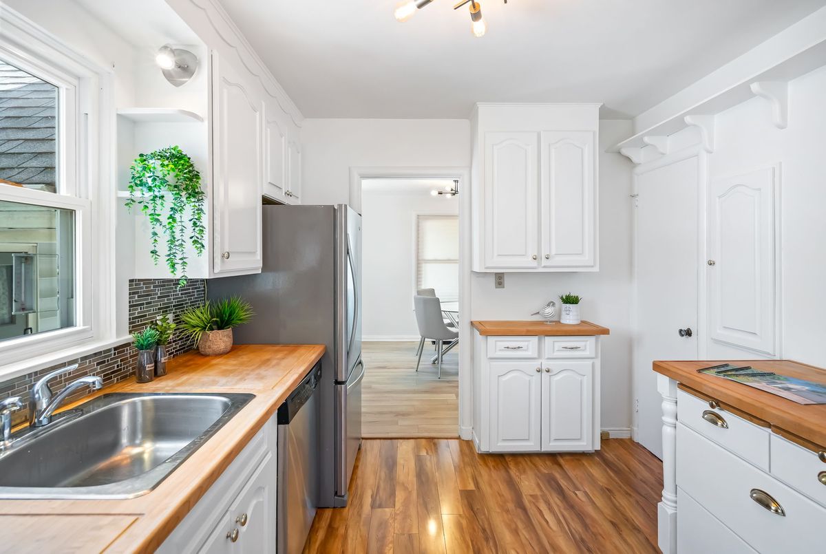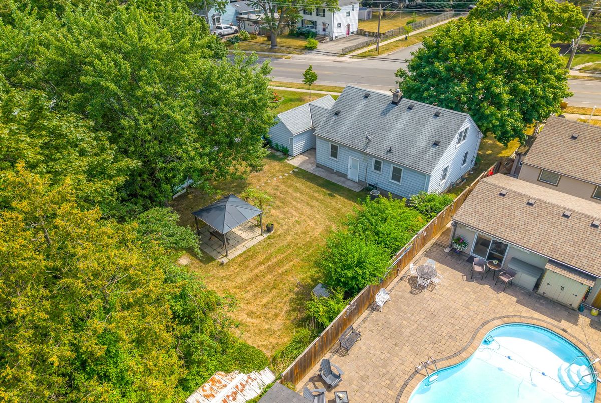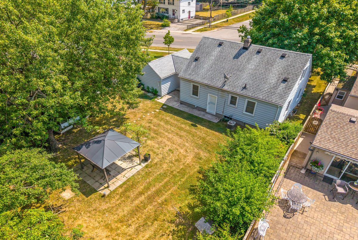 Charming and well cared for 1.5-storey home in sought-after north end of St. Catharines. Owned by the same family for over 50 years, this property blends character with thoughtful updates. Step inside to a freshly painted interior and newly installed vinyl plank flooring throughout the main and second levels. The open-concept living and dining area flows into an efficient kitchen with bright white cabinetry, tiled backsplash, and stainless steel appliances including a Whirlpool fridge and dishwasher, plus a GE stove. The main floor features a neat and clean 4-piece bathroom and a generously sized bedroom thats perfect for family or convenient one-level living. Upstairs offers two additional bedrooms ideal for kids or guests. All windows on these two levels are updated from original. The finished basement expands your living space with a large rec room, a 4th bedroom, a 2-piece bath (with potential to add a shower) and a spacious laundry area with washer, dryer, and a double laundry tub. Additional features include forced-air gas heating, central air conditioning, and 100-amp service. All three exterior doors (front, side, and rear) have been updated. Step outside to enjoy a large, private backyard with mature trees. A detached garage, covered front porch, covered breezeway from garage to house, and a double-wide concrete driveway (plus garage parking) complement the low-maintenance vinyl siding. Conveniently located near shopping, schools, and just minutes to the QEW, this lovingly maintained home offers great value and is ready to move into!