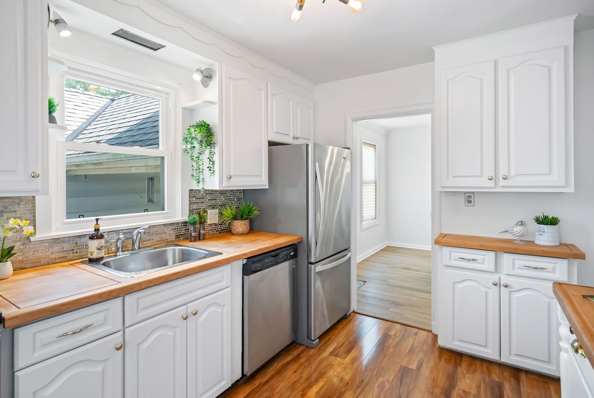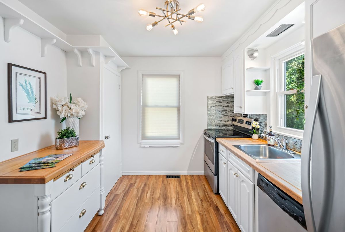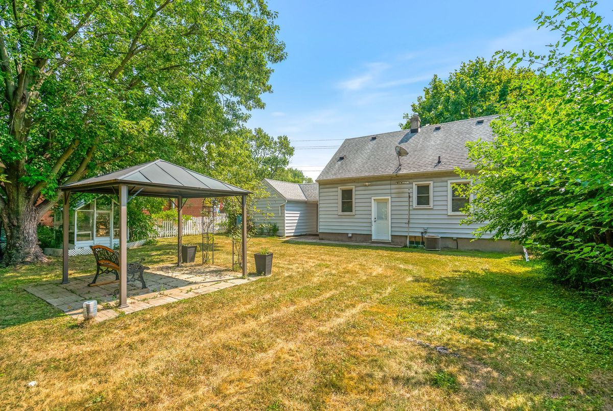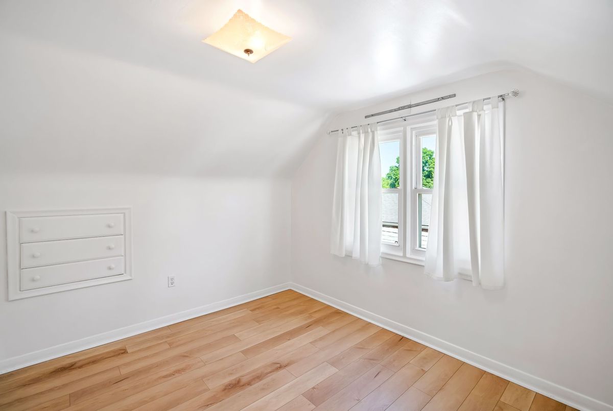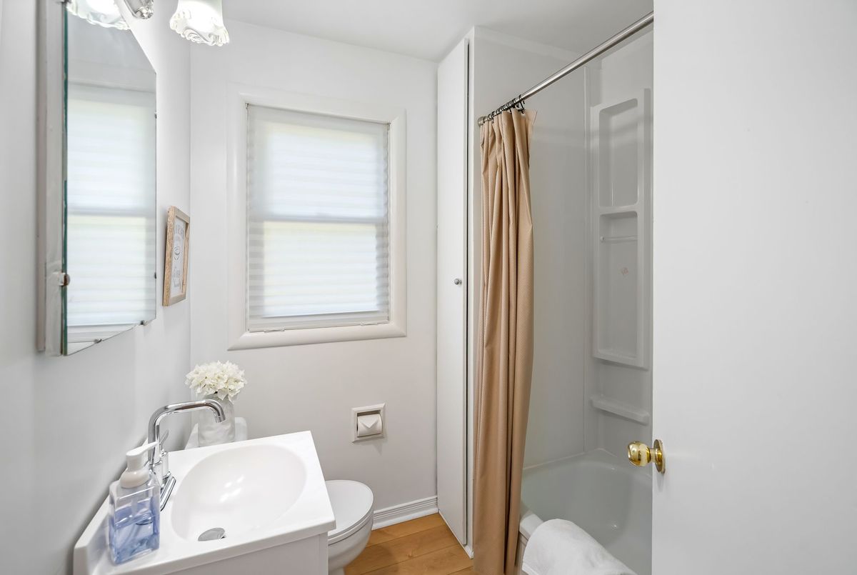 Charming and well cared for 1.5-storey home in sought-after north end of St. Catharines. Owned by the same family for over 50 years, this property blends character with thoughtful updates. Step inside to a freshly painted interior and newly installed vinyl plank flooring throughout the main and second levels. The open-concept living and dining area flows into an efficient kitchen with bright white cabinetry, tiled backsplash, and stainless steel appliances including a Whirlpool fridge and dishwasher, plus a GE stove. The main floor features a neat and clean 4-piece bathroom and a generously sized bedroom thats perfect for family or convenient one-level living. Upstairs offers two additional bedrooms ideal for kids or guests. All windows on these two levels are updated from original. The finished basement expands your living space with a large rec room, a 4th bedroom, a 2-piece bath (with potential to add a shower) and a spacious laundry area with washer, dryer, and a double laundry tub. Additional features include forced-air gas heating, central air conditioning, and 100-amp service. All three exterior doors (front, side, and rear) have been updated. Step outside to enjoy a large, private backyard with mature trees. A detached garage, covered front porch, covered breezeway from garage to house, and a double-wide concrete driveway (plus garage parking) complement the low-maintenance vinyl siding. Conveniently located near shopping, schools, and just minutes to the QEW, this lovingly maintained home offers great value and is ready to move into!