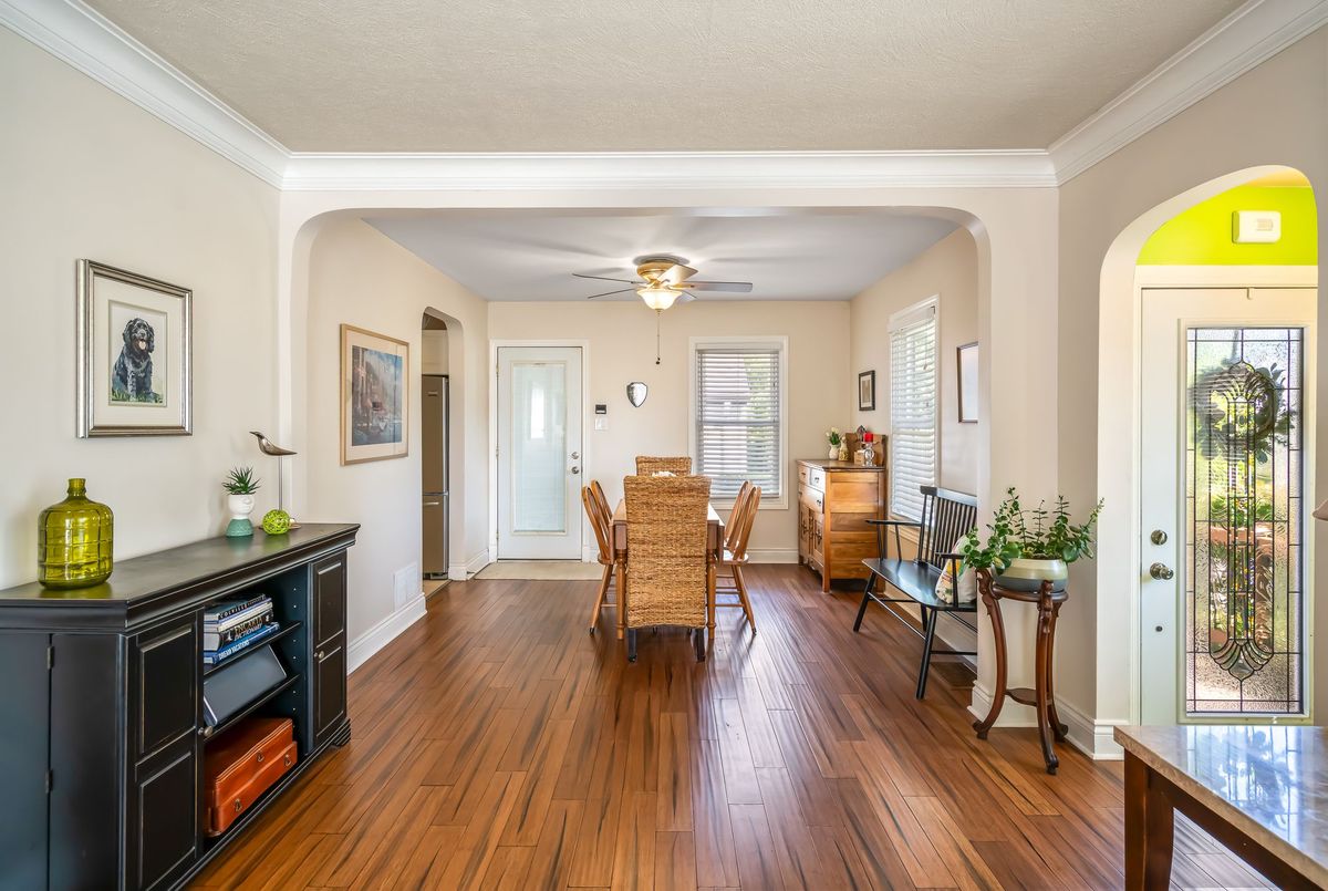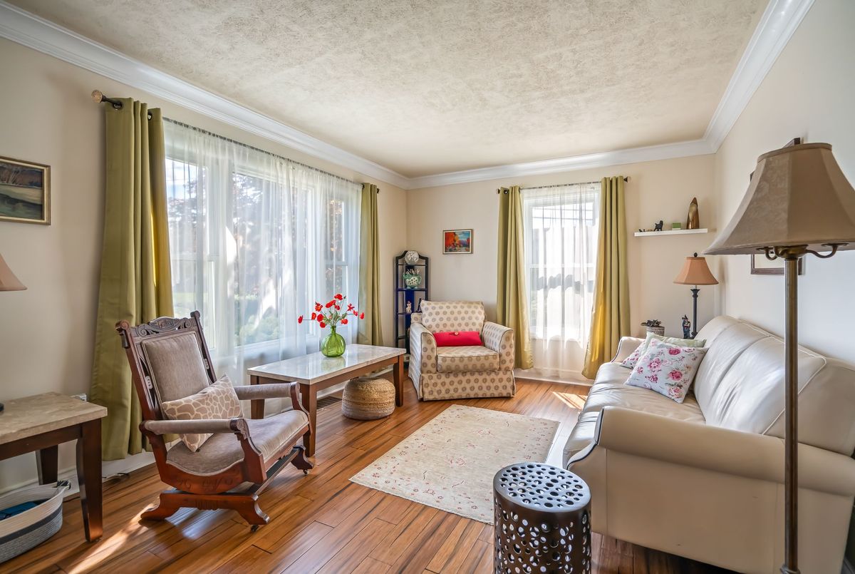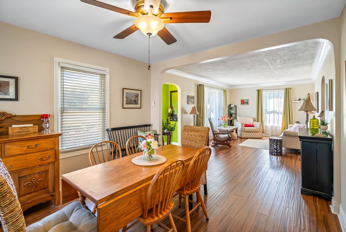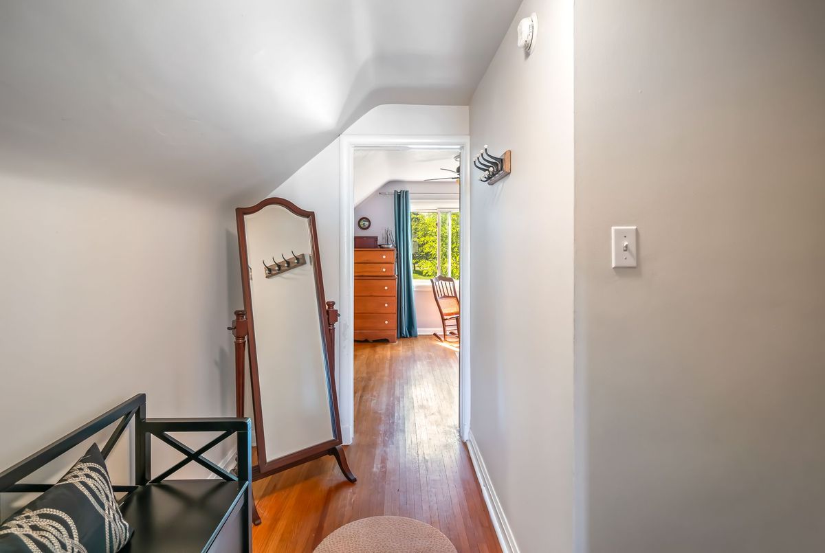 Charming tudor style 1.5 storey home in the desirable north end of St. Catharines. Thoughtfully maintained and updated, it blends classic character with modern comforts, creating a space that feels both timeless and move-in ready. Step into a welcoming foyer that opens to spacious living and dining areas filled with natural light from large windows offering a warm setting for everyday living and entertaining. The bright updated kitchen features ample cabinetry, nice modern touches, and direct access to the yard or the large enclosed breezeway/mudroom ideal for coming and going, bringing in groceries, or organizing everyday essentials. A main floor bedroom adds flexibility - perfect for those who prefer not to use stairs or as a convenient home office. Adjacent is the 4-piece updated main bath. Upstairs, two additional good-sized bedrooms await. The lower level offers over 550 sq. ft. of additional finished living space, including a spacious rec room, potential 4th bedroom or storage, a 3-piece bath, and a versatile office/craft area. Mechanicals include forced air gas heating, central air conditioning, 100-amp breaker service, and copper plumbing. Set on a large corner lot with the side of the home along the main road (Linwell Road), while the front of the home and its expansive opposite side yard face Walker Avenue - a quiet side street that allows for ease of coming and going. The yard areas and patio are framed by manicured hedges for privacy. A detached garage with breezeway access offers parking or workspace, complemented by a paved driveway for two more vehicles. Conveniently located near parks, Governor Simcoe High School, a convenience store, and medical offices. Public transit is right outside your door, and you're less than a 5 minute drive to the lake. A wonderful opportunity to own a great home in a great area!