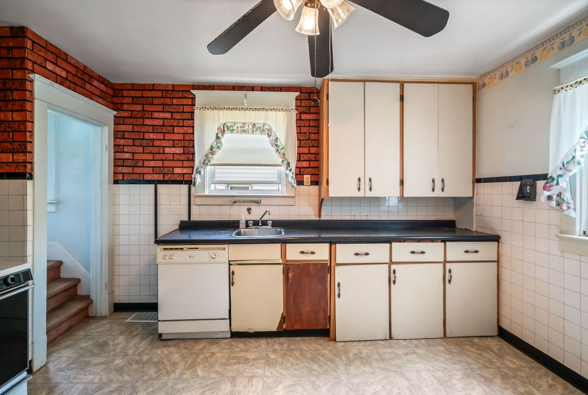LOWEST PRICED 3 BEDROOM HOME in ALL of Niagara Falls AND St. Catharines! This 1.5 storey stucco (looks like brick) 1,000 square foot home has had the same owner for the past 70 years! Sitting on a quiet street in an established neighbourhood, it offers outstanding potential for those ready to invest and renovate. Be prepared - it needs plenty of updating! Step inside past the front veranda into the living and dining rooms with their original hardwood floors. Large eat-in kitchen. One main floor bedroom with adjacent 4 piece bathroom. Upstairs you'll find two additional bedrooms. A full unfinished basement provides additional space for storage or possible finishing. Furnace and hot water tank are both rentals and were both replaced in April 2025. The property has a private driveway with room for multiple vehicles, a detached garage, and a quiet backyard with good privacy. Being sold in as-is condition and appliances to be included. Conveniently located near Lundy's Lane with shopping, restaurants, schools, and highway access close by. Looking for a project? This is a good one!