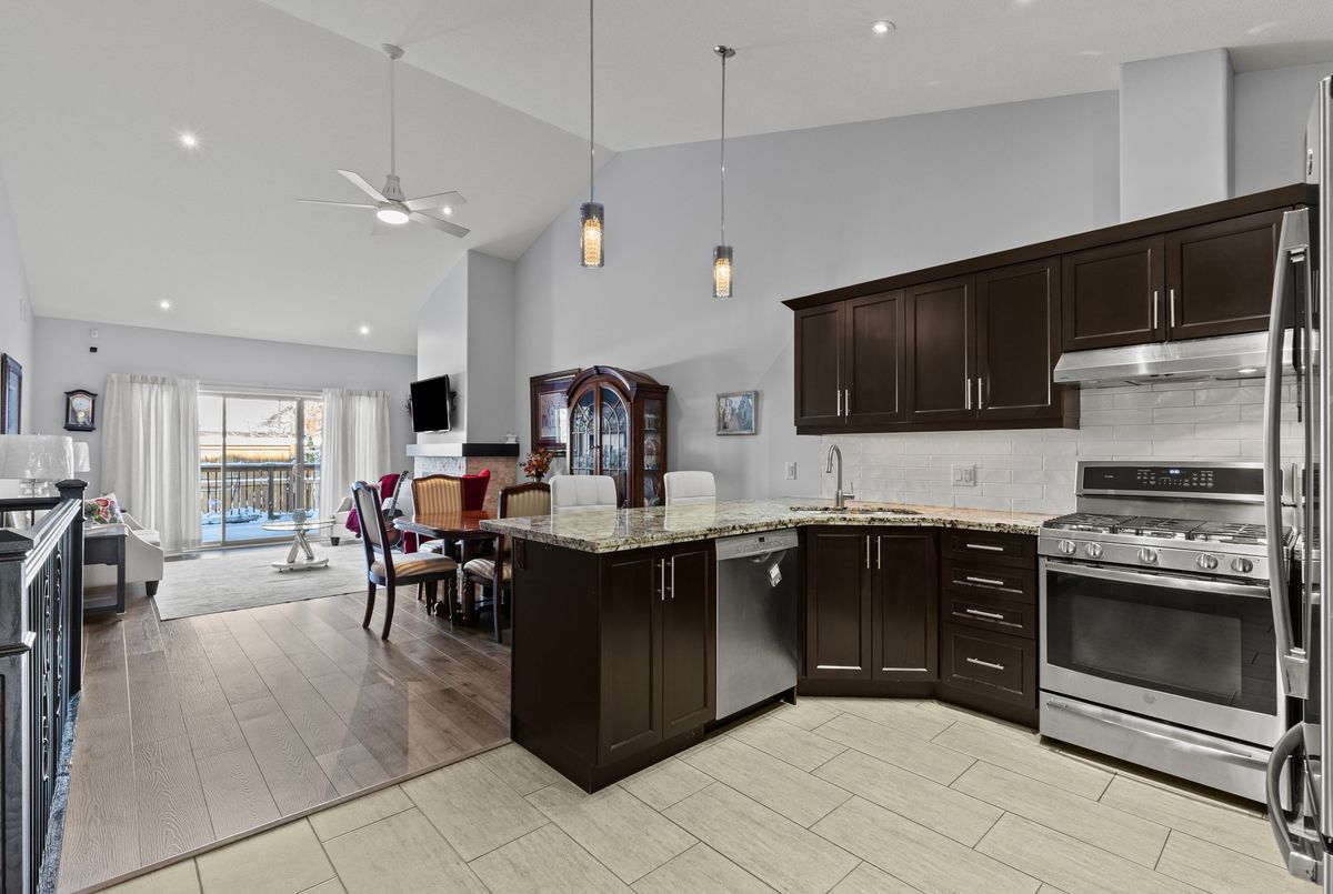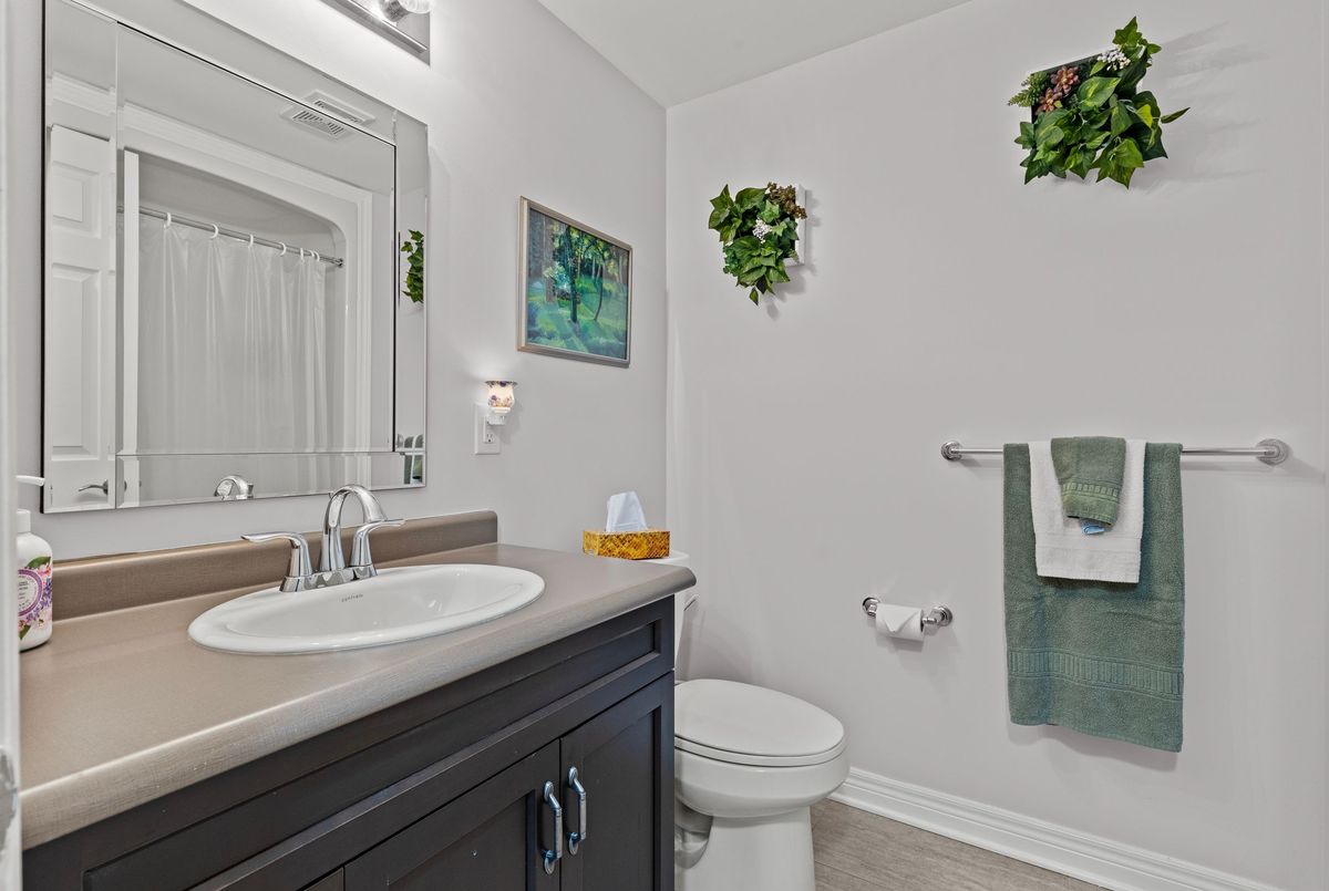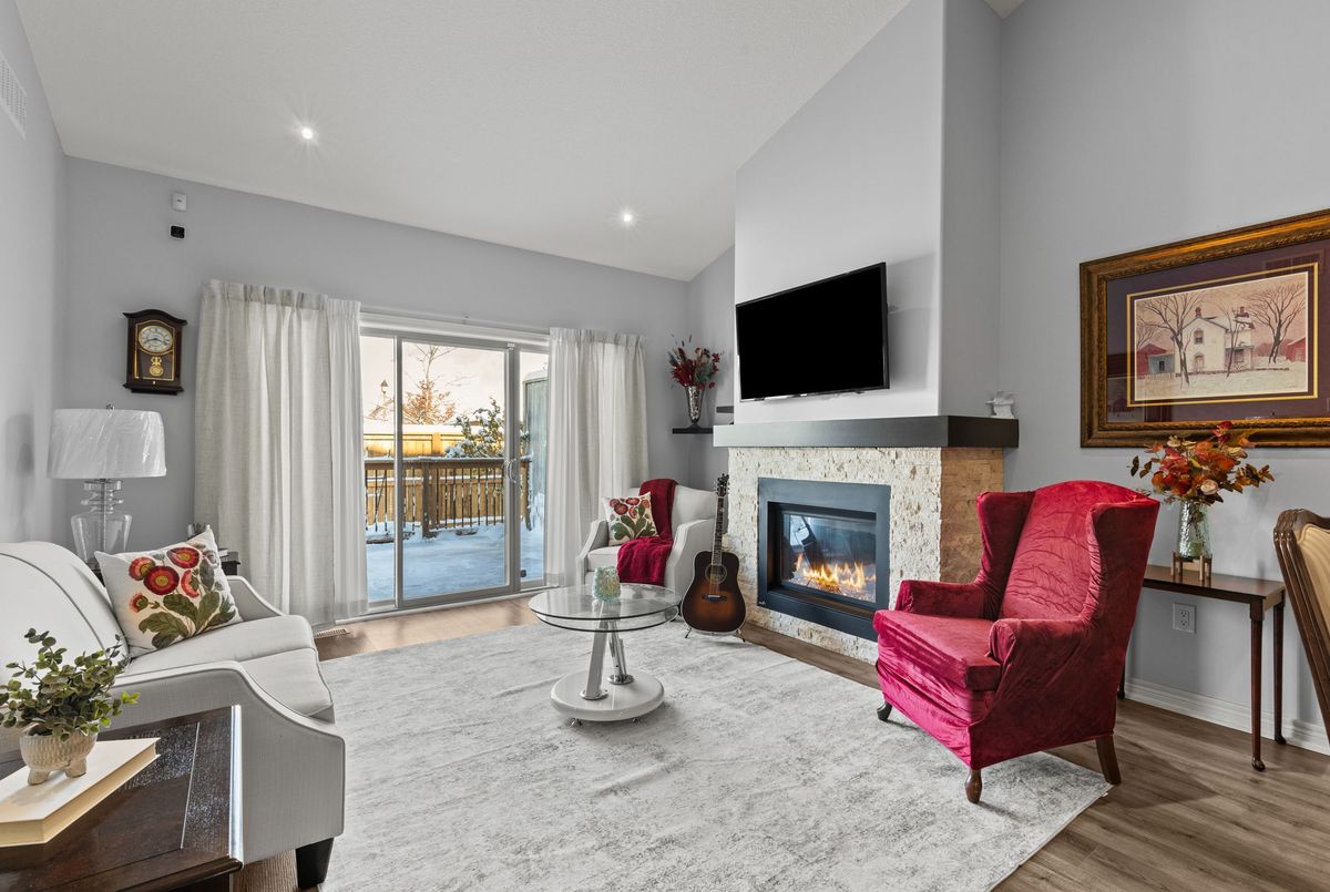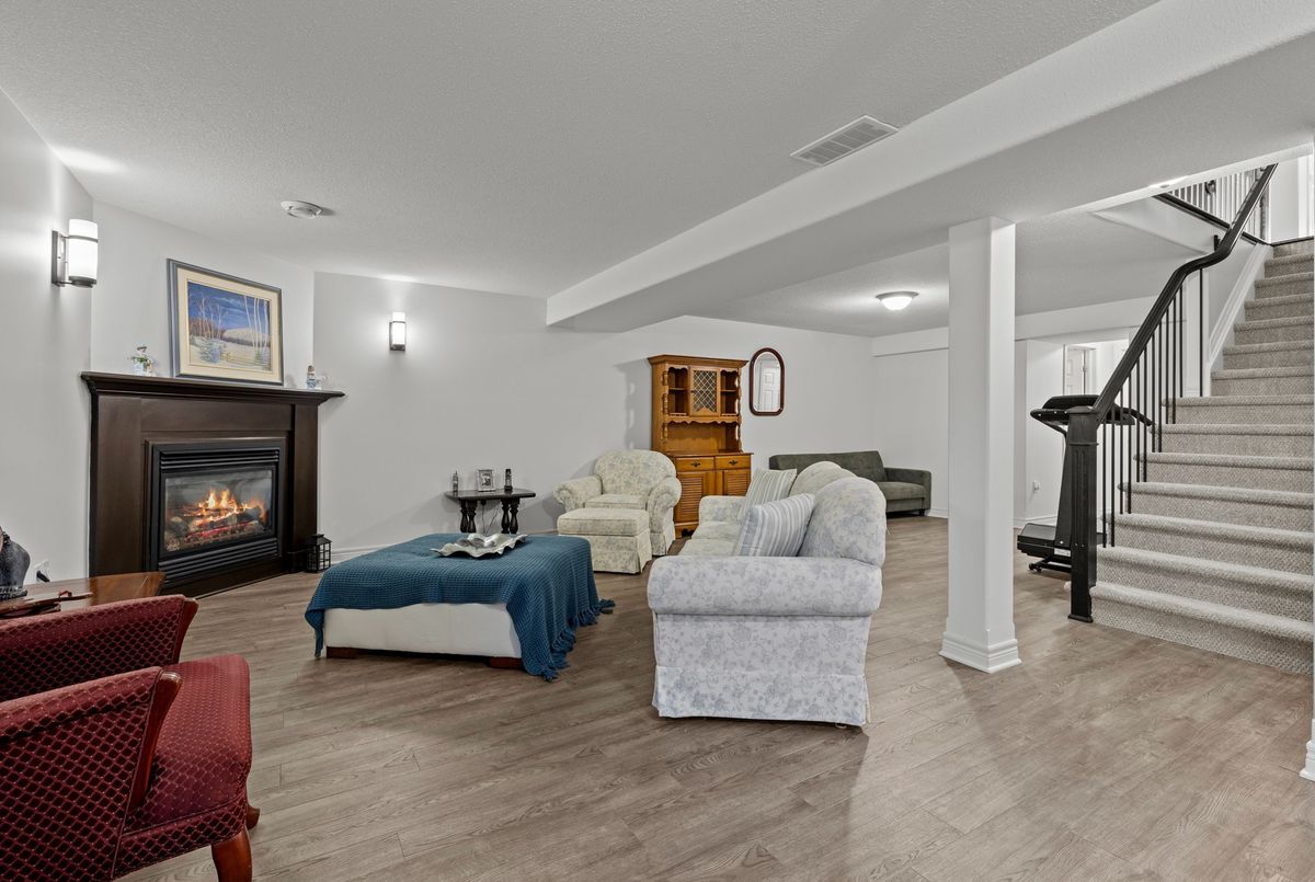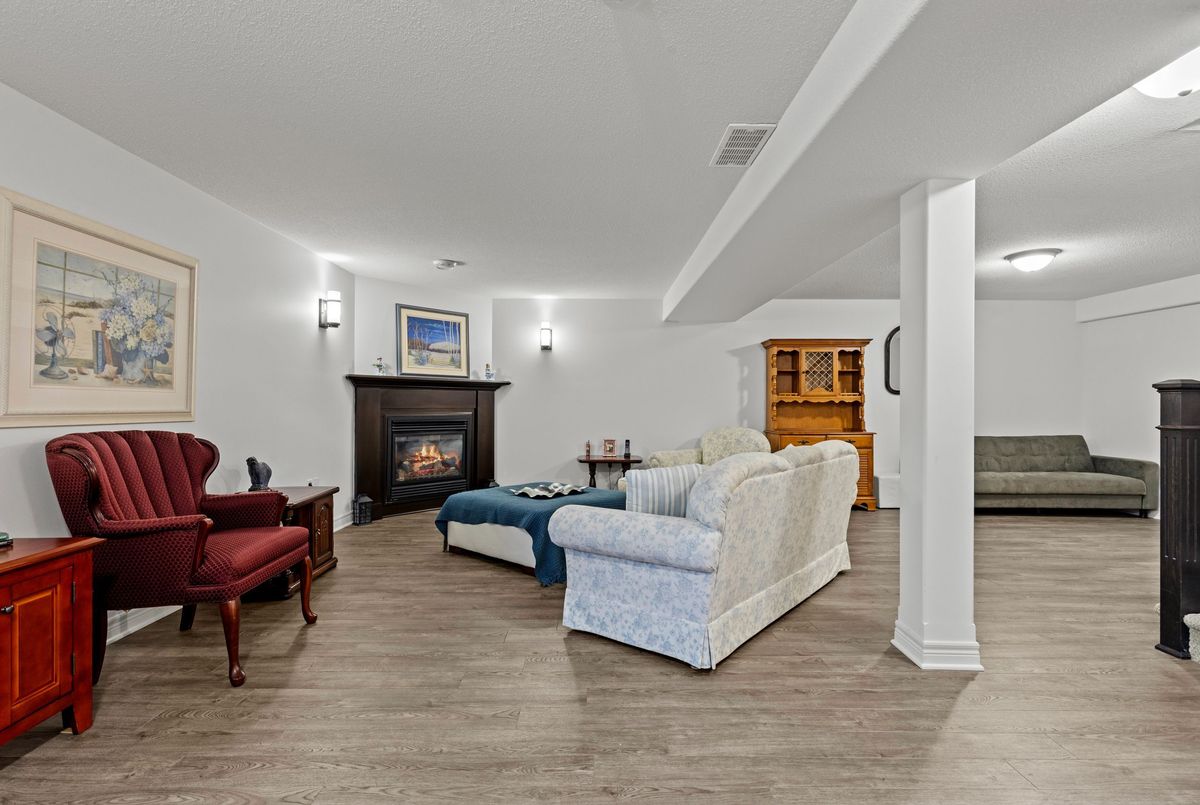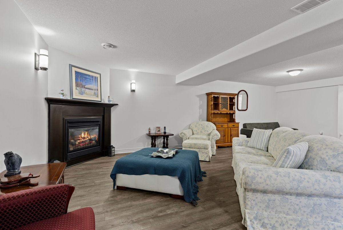 Stunning semi-detached townhome with double car garage in Niagara Falls! As you enter, you'll be greeted by elegant tile flooring in the foyer while the first bedroom on the right features beautiful engineered hardwood flooring and double closets. The kitchen showcases warm cabinetry accented by white subway tile backsplash, stainless steel appliances, granite countertops, and centre island with breakfast bar. The open-concept living and dining area is highlighted by vaulted ceilings, a cozy gas fireplace, and durable luxury vinyl plank flooring, creating an inviting space to relax or entertain. Sliding patio doors lead to a private deck and small grass area - perfect for pets! Enjoy maintenance-free, low fee condo living as snow removal and lawn care are both taken care of for you! The convenience continues with a main level laundry room located near the double car garage that offers direct access into the home. Overlooking the backyard, the spacious primary bedroom offers a walk-in closet and a beautifully finished ensuite with a walk-in shower. The fully finished basement extends your living space. The vinyl flooring continues through the family room with second gas fireplace and the 3rd bedroom with walk-in closet. There's also a 4 piece bath with a tub/shower combined plus a dedicated workshop area-ideal for hobbies or extra storage. This home truly combines comfort, style, and easy living in one perfect package!