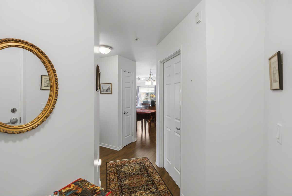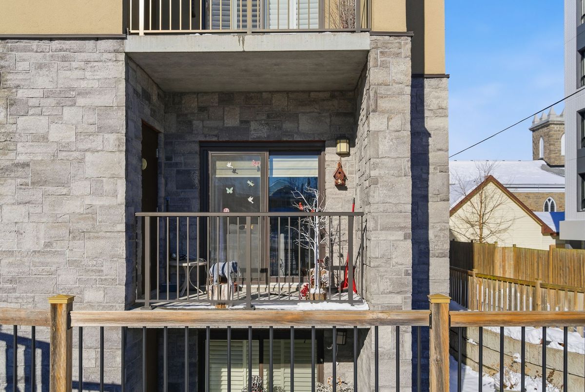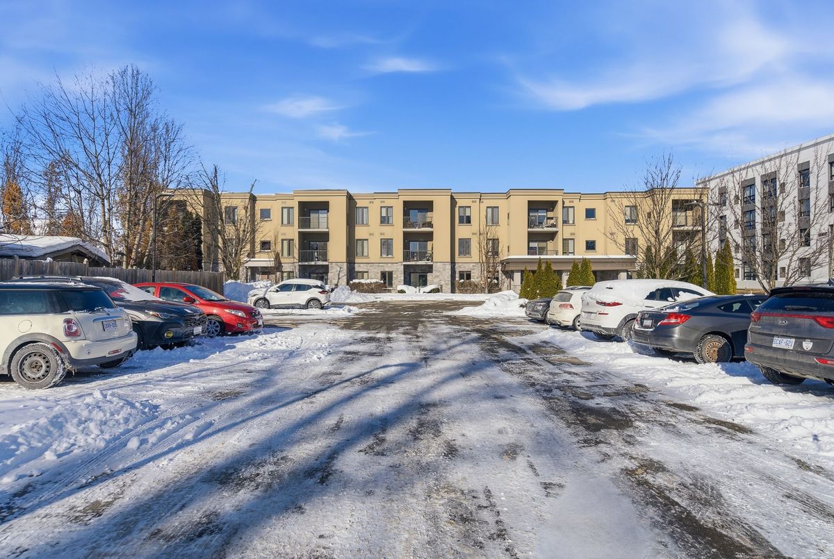 Walk right into your condo with no need to use the elevator! Convenient main floor 2 bedroom, 2 bath accessible condo over 1,100 square feet! Wonderfully kept and cared for by the owners since new in 2016. Wonderful natural light shines into this South-East exposure corner unit. Open design living area with white & bright kitchen with plenty of cabinets and counter-space with adjacent dining room area. Spacious living room with corner gas fireplace. Sliding patio doors to balcony - perfect for a morning coffee and a relaxing afternoon book read. Private split-bedroom layout with primary bedroom ensuite with easy step-in shower. The 2nd bedroom is currently used as a den and has an adjacent 3 piece bath with accessible step-in jetted bathtub. Laundry room with convenient stack-able washer and dryer and laundry tub. Includes central air, owned hot water tank, forced-air gas furnace, one surface parking space, private locker plus common area room for additional patio furniture and bike storage. This exceptionally maintained building also offers a large social room with kitchen and bathroom, exercise room, and a craft & hobby room. And for the spring to fall months you can enjoy the outdoor space with gazebo and bbq area. Condo fees are keep very reasonable by having no costly pool or underground parking to maintain. A great quiet neighbourhood too - just a short walk to shopping, groceries, pharmacy, dining, churches, transit plus quick access to highway 58, the 406 and onwards to the QEW and all that Niagara has to offer!