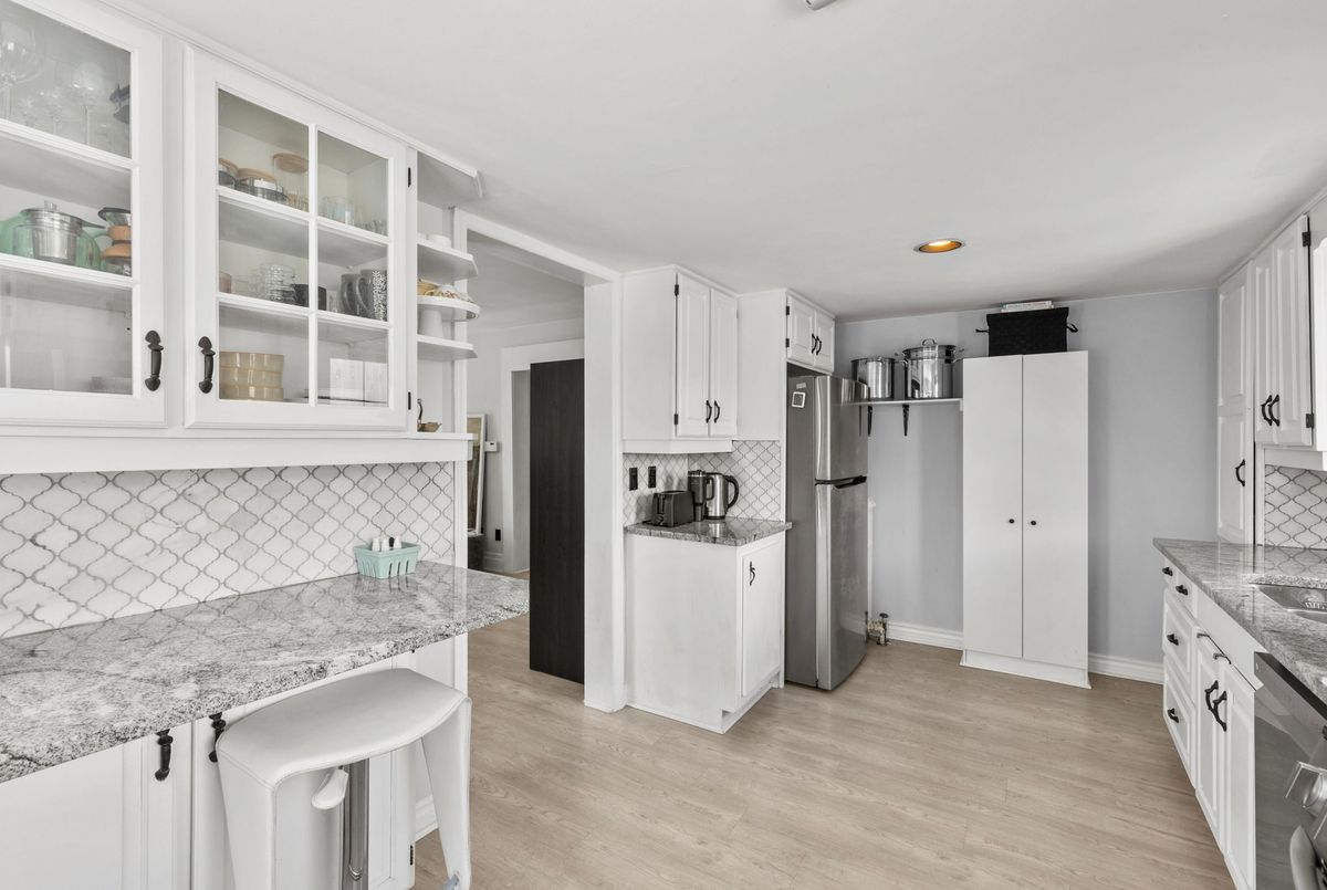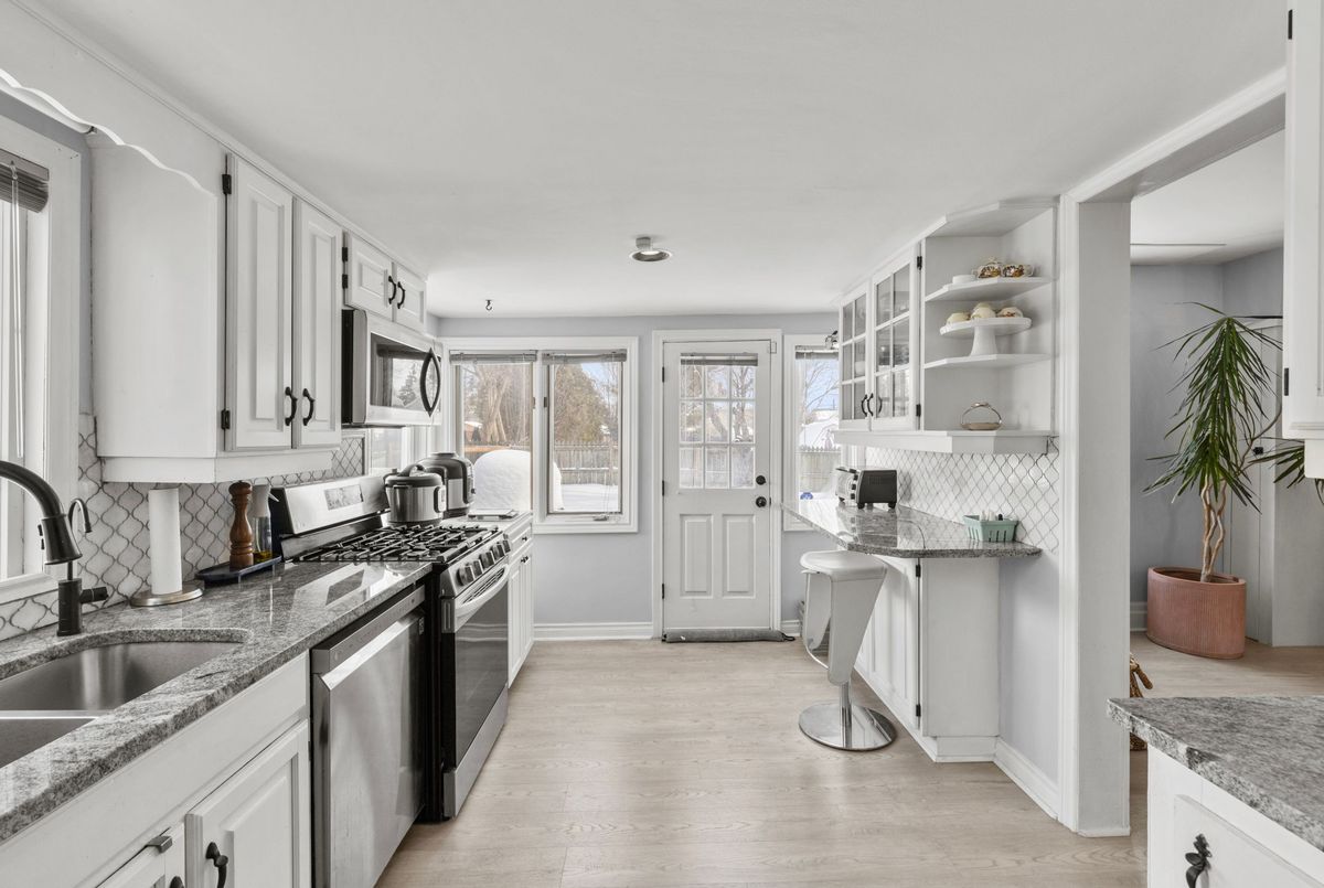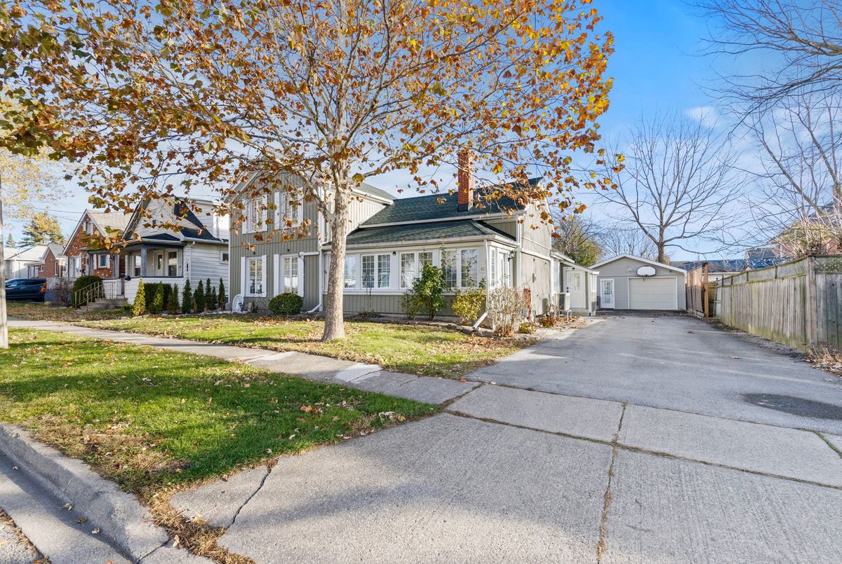 Welcome to 60 West Street North! Located on a quiet street in the desirable Thorold Downtown neighbourhood, this sun-filled, fully detached 5 bedroom, 2.5-bathroom home offers approximately 1,681Sqft of thoughtfully designed living space and sits on an expansive 66' x 100' lot that perfectly balances interior comfort with outdoor enjoyment. The property features parking for up to six vehicles, additional boat or RV parking, and a detached double-car garage with a dedicated workshop. Over $200,000 has been invested in extensive interior and exterior renovations, including all-new flooring (with original hardwood preserved underneath), widened interior archways that create a seamless open-concept flow, and a new powder room on the main floor. The modern kitchen is equipped with stainless steel appliances, granite countertops, and a breakfast bar, with a convenient walk-out to the backyard, while new window blinds have been installed throughout the home. The primary bedroom, ideally located on the main floor, offers a fully renovated, oversized ensuite and walk-in closet, while the second level features three additional bedrooms, all with large closets, and a 4-piece bathroom. The maintenance-free backyard has been extensively upgraded with concrete finishes and privacy shades, making it ideal for outdoor entertaining. Recent updates include a roof (2019), three heat pumps (2022), and a water softener (2020). This property delivers outstanding convenience and connectivity while retaining the charm and character of a mature community, located just 5 minutes from the Pen Center, St. Charles Catholic Elementary, Westmount Public, Thorold Secondary Schools, Catholic & Christian Churches, and Highway 406, 10 minutes to hiking trails, 15 minutes to Seaway Mall (Welland), and approximately 15-25 minutes to downtown St. Catharines or Niagara Falls-a beautiful home that is truly a must-see.