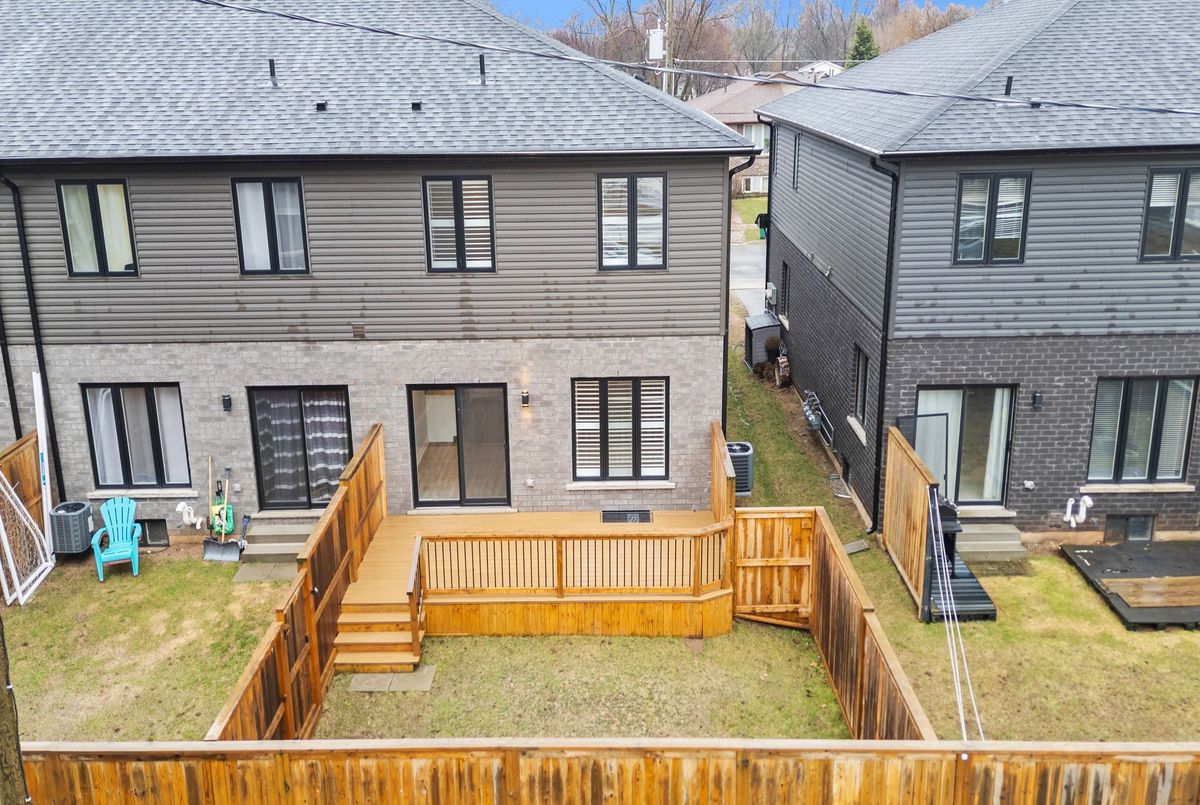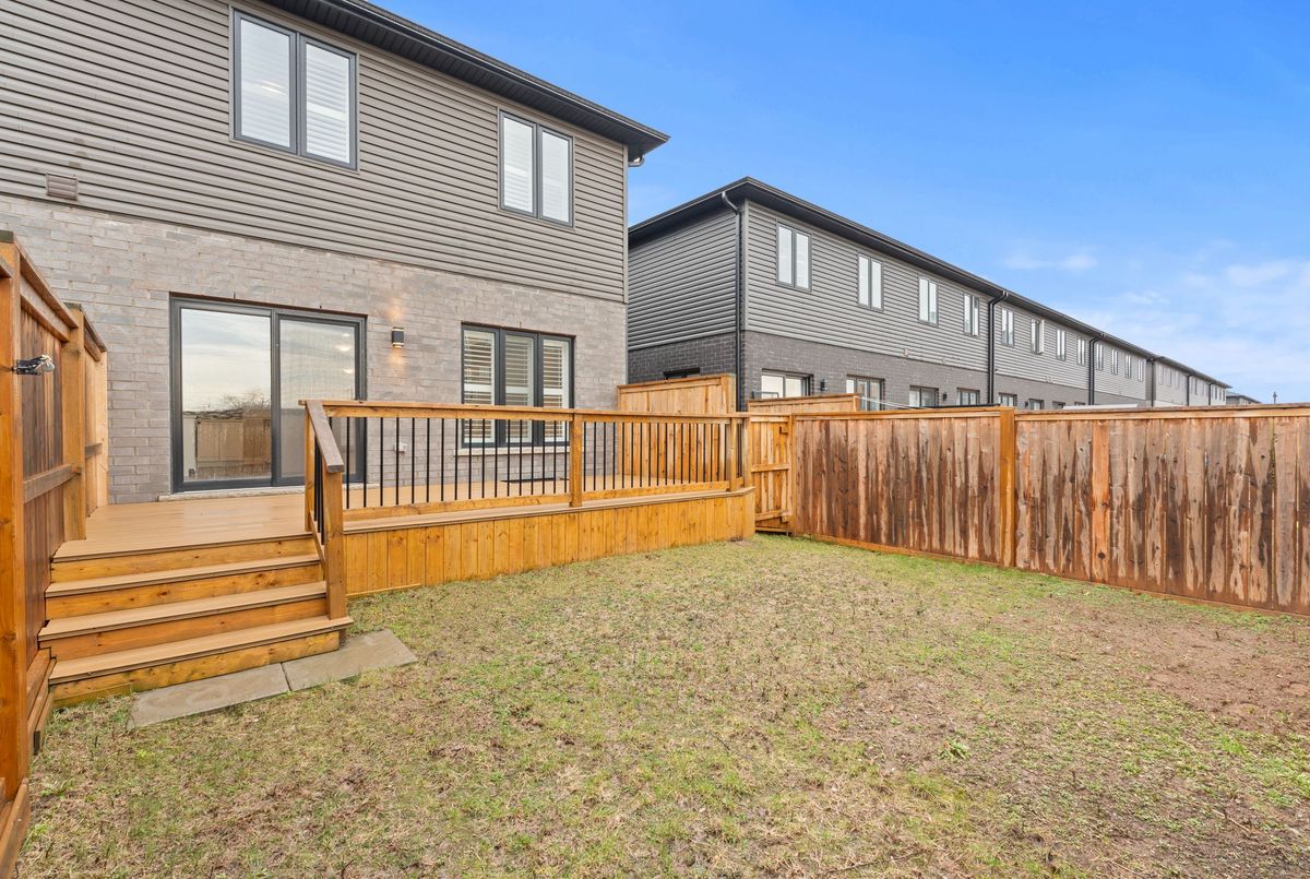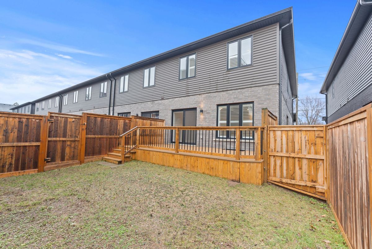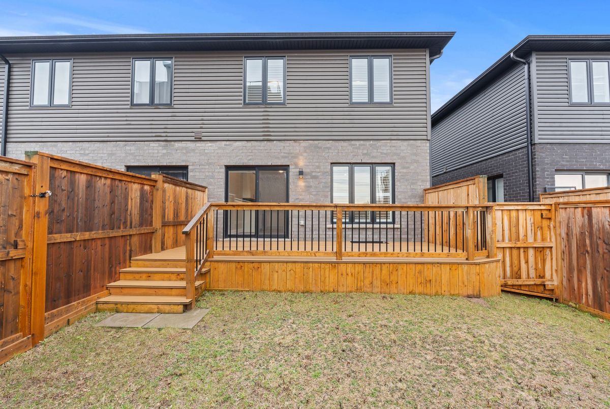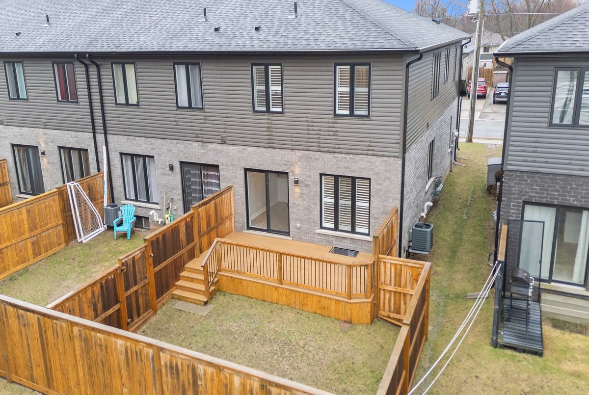 Stunning end-unit townhome in Niagara Falls, perfectly situated just off the QEW. An absolute commuter's dream. Built in 2021, this beautifully upgraded home features over $40,000 in builder upgrades and showcases pride of ownership throughout. Enjoy a fantastic location close to grocery stores, gyms, hospitals, and all major amenities. The exterior is complete with a deck, fully fenced yard, and elegant California shutters, offering both comfort and privacy. Inside, you'll find a bright and functional layout with a kitchen featuring a breakfast island, quartz countertops, stylish backsplash, and water line for the fridge. The additional windows exclusive to end units flood the home with natural light. Upgrades include pot lights, upgraded flooring, an oak staircase, enhanced trim and baseboards, higher-end paint, and a walk-in shower. The home offers 3 good-sized bedrooms, ideal for families or professionals alike. A 1-car garage with parking for 2 additional vehicles in the driveway provides ample space. Your basement includes a rough-in for a future bathroom, offering excellent potential for additional living space. HRV and hot water tank are fully owned (approx. $6,900 value).A true turnkey opportunity offering modern finishes, a prime location, and exceptional value.